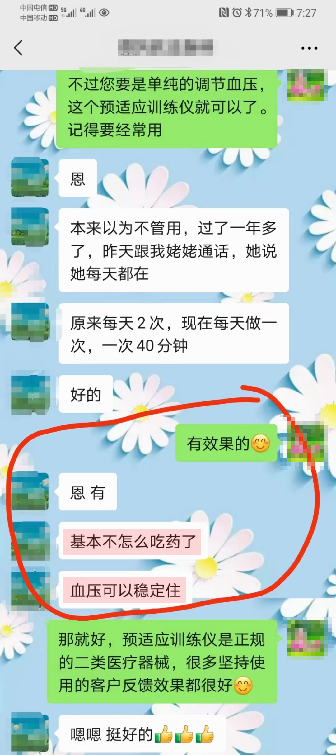 血壓恢復(fù)正常,頭暈的感覺(jué)消失了”